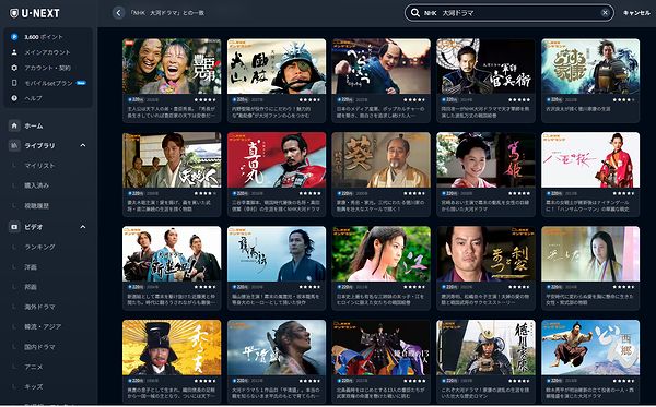 大河ドラマは1作品50話近くあるものが多く、まとめて視聴したいという方は、1話ごとにレンタルするのではなく、月額料金パックでの視聴がおすすめです。