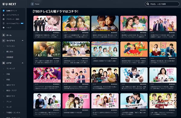 TBS火曜ドラマは動画配信サービス、サブスクでは基本的にU-NEXTで配信されています。